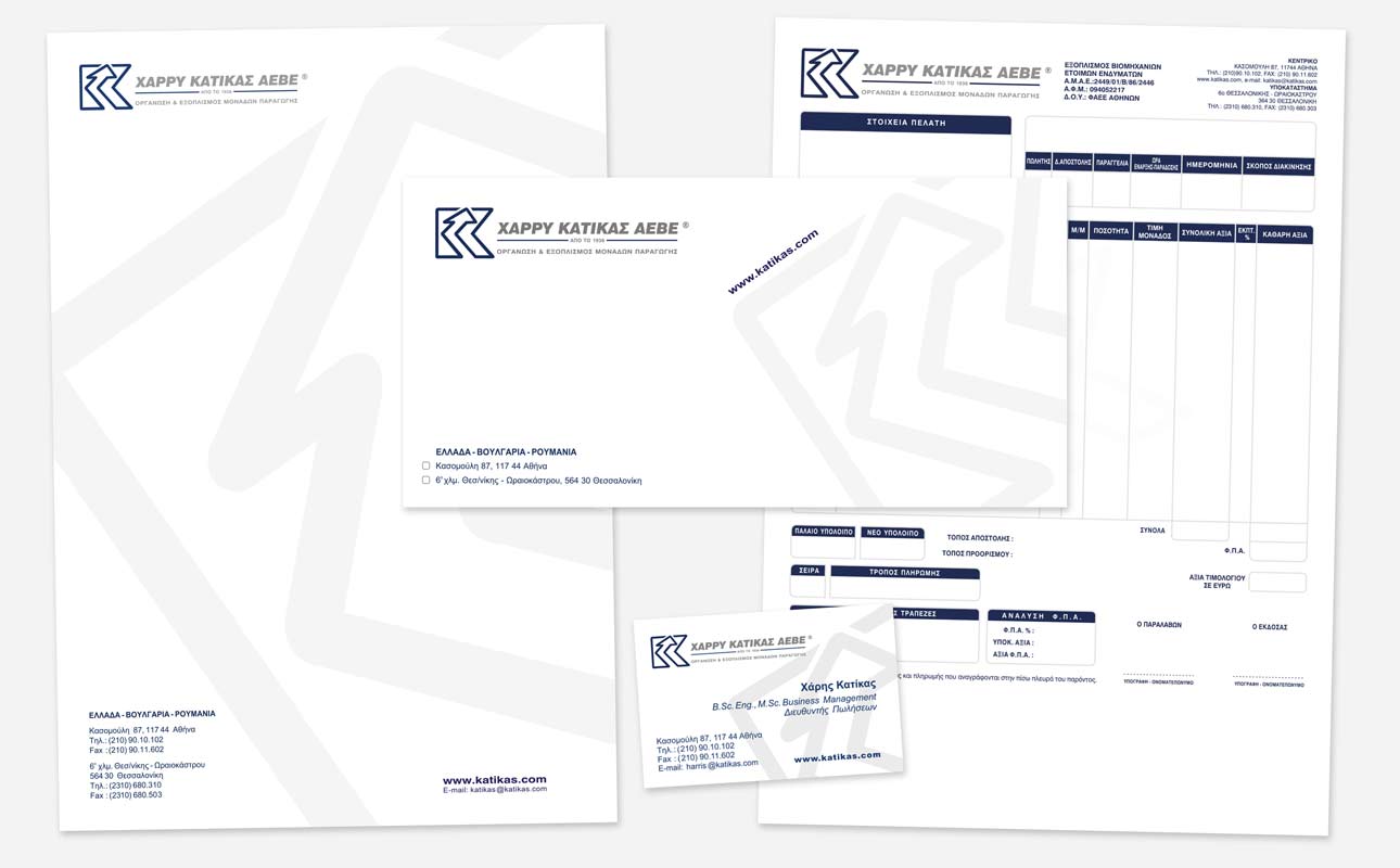 Σχεδιασμός εντύπων εταιρικής ταυτότητας εταιρίας εξοπλισμών βιομηχανιών ετοίμου ενδύματος.